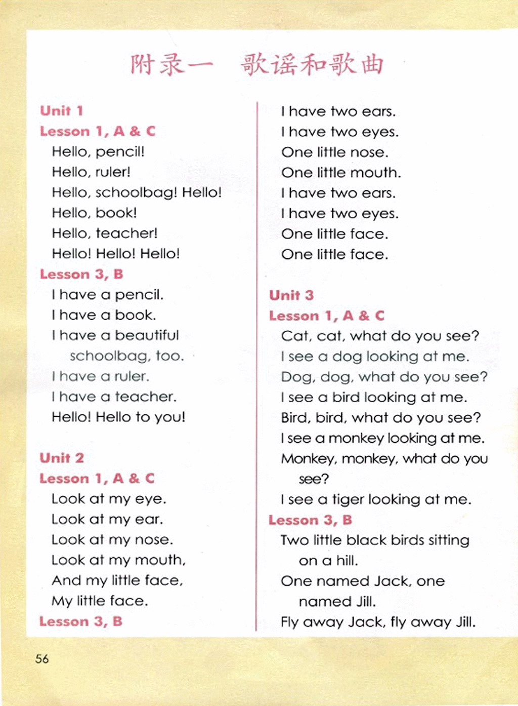 新起点一年级上册英语歌谣和歌曲