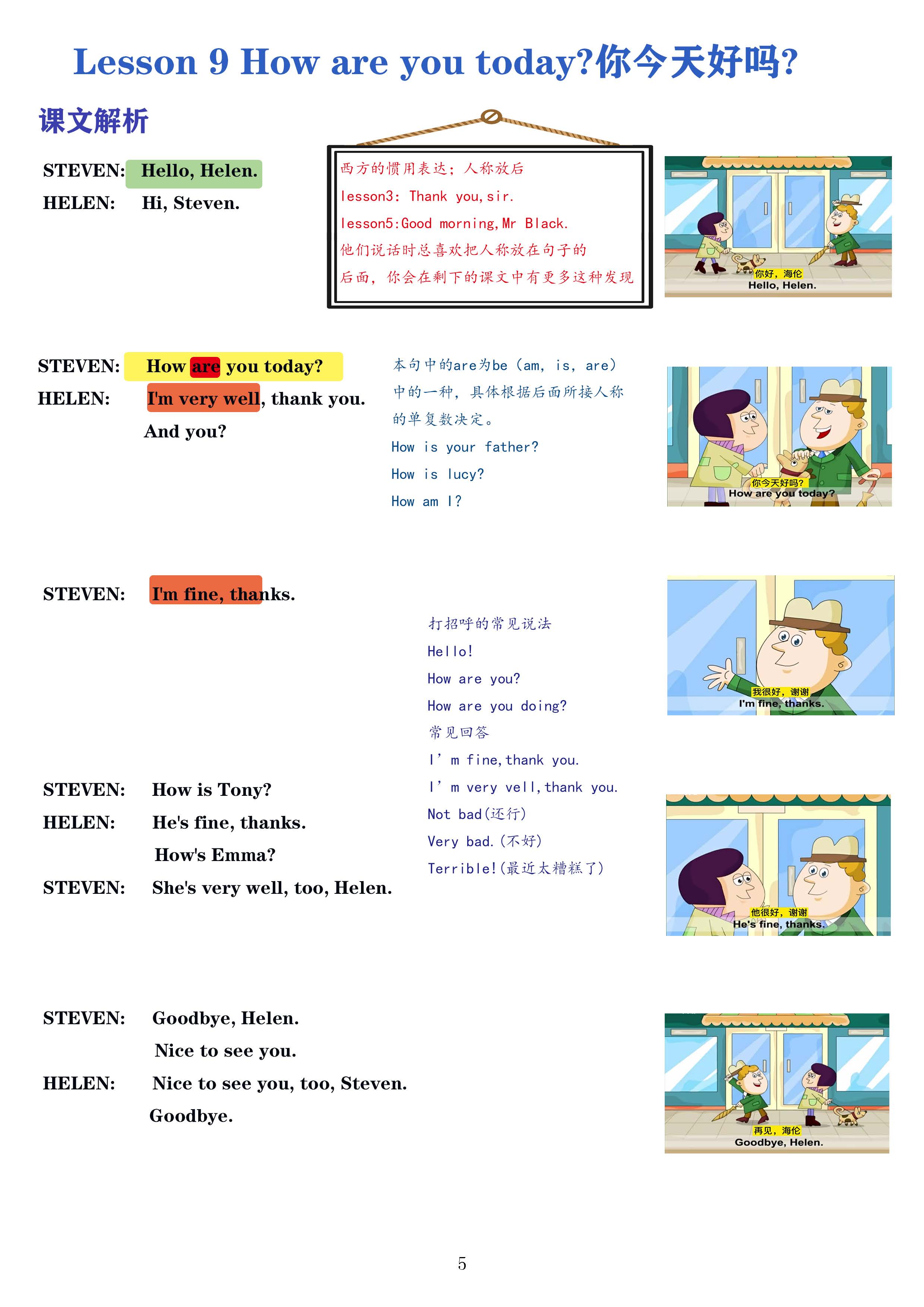 Lesson 9 How are you today?自学笔记