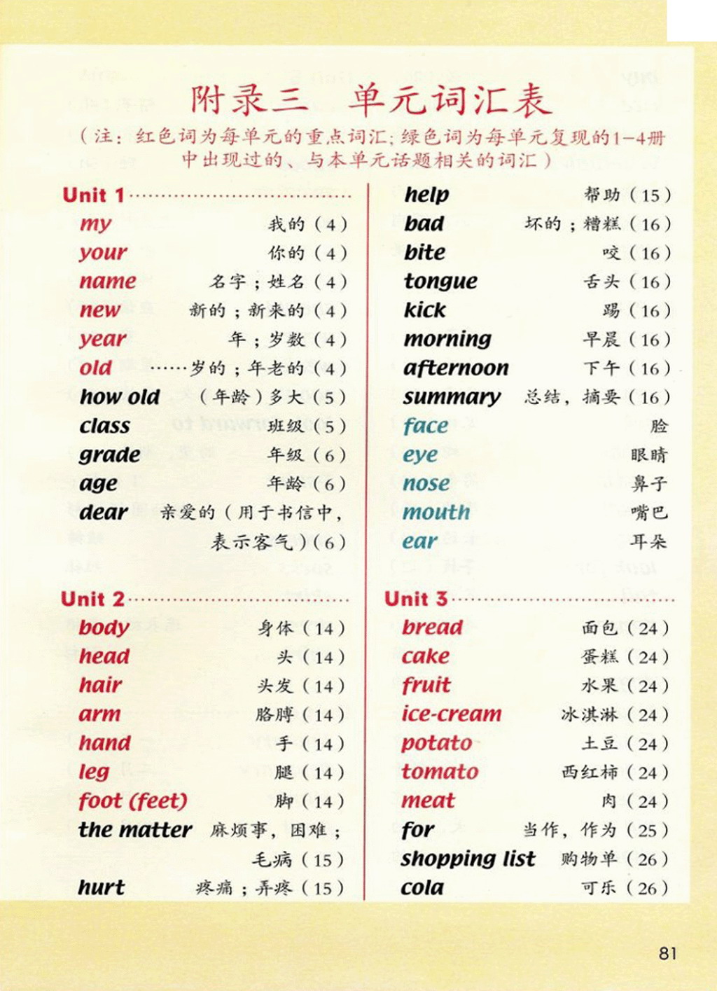新起点三年级上册英语单词表