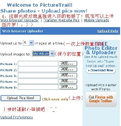 进入网站地址:http://www.picturetrail.com/