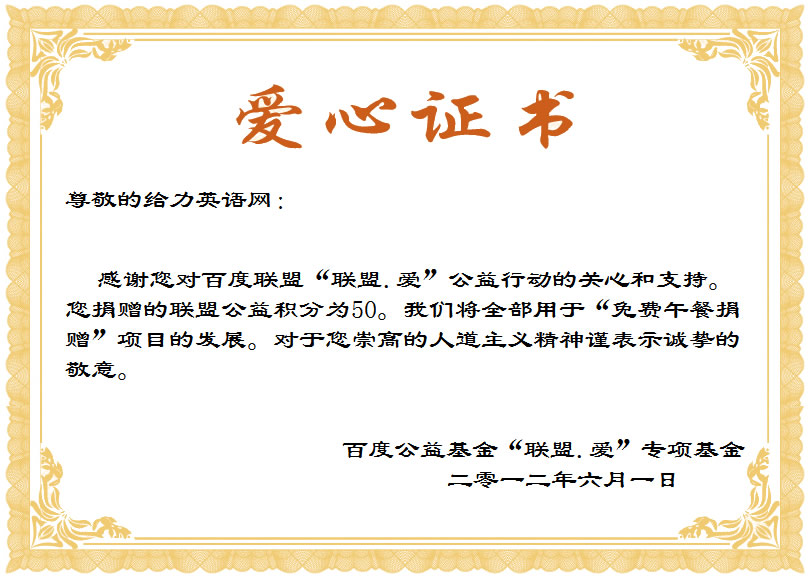 给力英语网热心参与百度联盟“联盟.爱”公益行动 - 给力英语