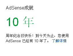 时间过得真快,今看到GOOGLE的通知,告知给力英语网使用ADSENSE已经十年,仿佛只是一眨眼的功夫啊.