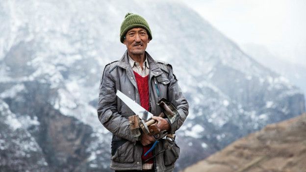 一路上我们也遇到当地人,但他们对这种险峻的道路和周围环境都已经习以为常。原住民的后代旁吉人(Pangwal)还沿着公路边建起小农场。海拔较高地区的伯特(Bhot)人说藏语,大多数以畜牧为生。为了在恶劣的环境中生存,他们腌制肉类,存储大麦,还酿造一种在当地被称为“patru”或“rakh”的烈酒。冬季,整个山谷会被白雪吞没,是当地人最难熬的日子。通过公路抵达昌巴需要两天时间,在需要医疗急救时,政府会安排直升机为民众服务。