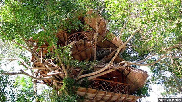 The noble tree house – all natural materials, sturdy construction, aloof from the troubles of the world. In a more dangerous time in human history, their position above the ground would protect the dweller against environmental difficulties and possible predators. As modern construction has improved, these arboreal residences have become less of a practical dwelling and more of a children's novelty - a secret den erected in many a back garden. But now, these fun shelters are appealing to adults too and many are booking themselves in for a few nights among the treetops. These tree house hotels can be found From Europe to Australia. Best of all, they come in a variety of interesting designs! From the traditional 'four walls and a roof' habitation, such as at TreeHouse Point, in Washington, North America, to the more artistic Nothofagus Hotel in Chilean Patagonia, whose twelve-sided walls make it look like a beehive. If that doesn't appeal, how about a tree pod? The Free Spirit Spheres resort on Vancouver Island in Canada allows guests to stay in one of three yellow spheres, which are suspended from trees. The company was founded in 1998 by Tom Chudleigh, who hand built the pods from cedar wood and fibre glass, and then added fixtures and fittings. Not only are they as safe as houses, they're popular! Visitor numbers have probably doubled in the past five years, Mr Chudleigh tells the BBC. Digs which are original seem to be a big draw. In Sweden, at the Treehotel, numbers have also risen. "In 2010, we had four rooms and around 1,500 guests a year. Today we have seven rooms and nearly 5,000 guests," Kent Lindvall explains. Mr Lindvall co-owns the Treehotel with his wife Britta Lindvall. Each of the domiciles there was designed by an architect, who was asked to make use of the light and surroundings. Their abodes include a mirrored cube, a bird's nest and a UFO. And how about an office? Microsoft, hoping to give its employees thinking space, has commissioned a three-building structure from Pete Nelson, tree house book author and designer and builder of tree houses. "Studies show people can work better in nature. They are more productive," says Mr Nelson. If you've no head for heights, then maybe a tree house getaway isn't going to be your home away from home. But the sense of adventure, the novelty of the setting and the opportunity to return to nature has given an increasing number of tree house-staying adults something to write home about.