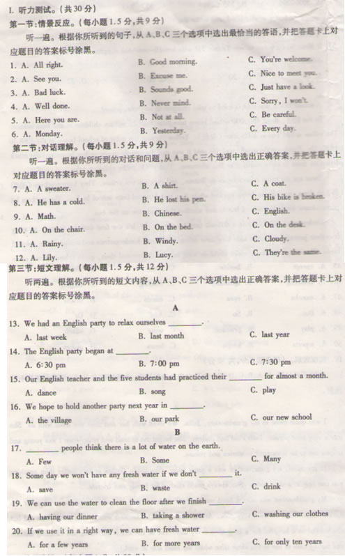 > 重庆市2012年中考英语听力mp3和真题下载