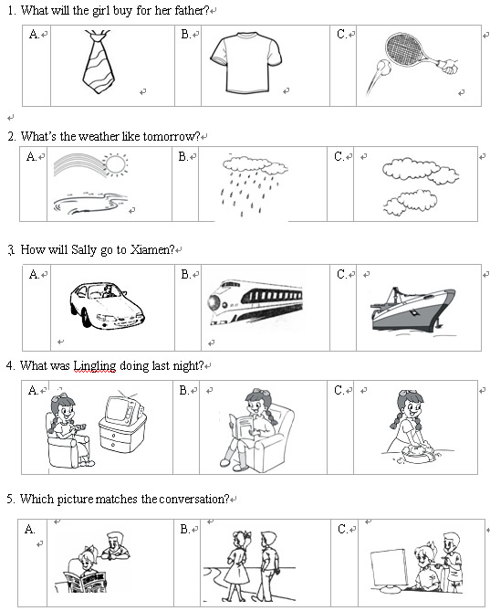 第一节:听小对话,请从A、B、C三个选项中选择符合对话内容的图片。