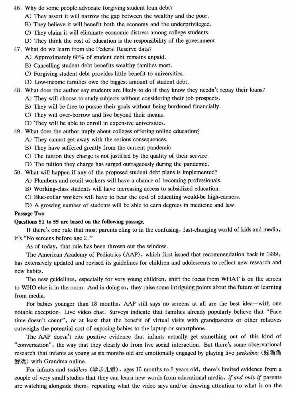 2023年12月英语六级真题和解析(第三套)