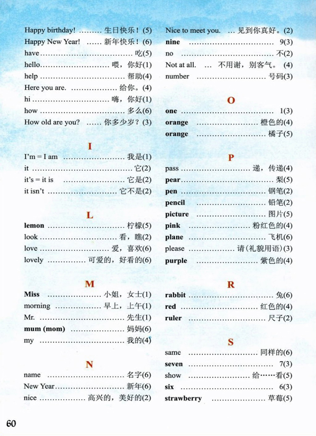 重庆大学出版社三年级上册英语单词表