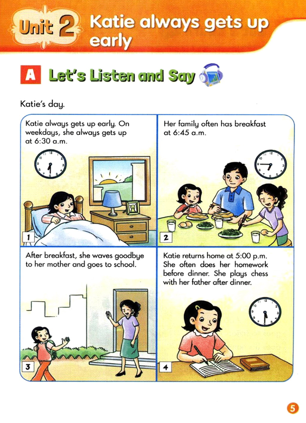 > Unit 2 Katie always gets up early