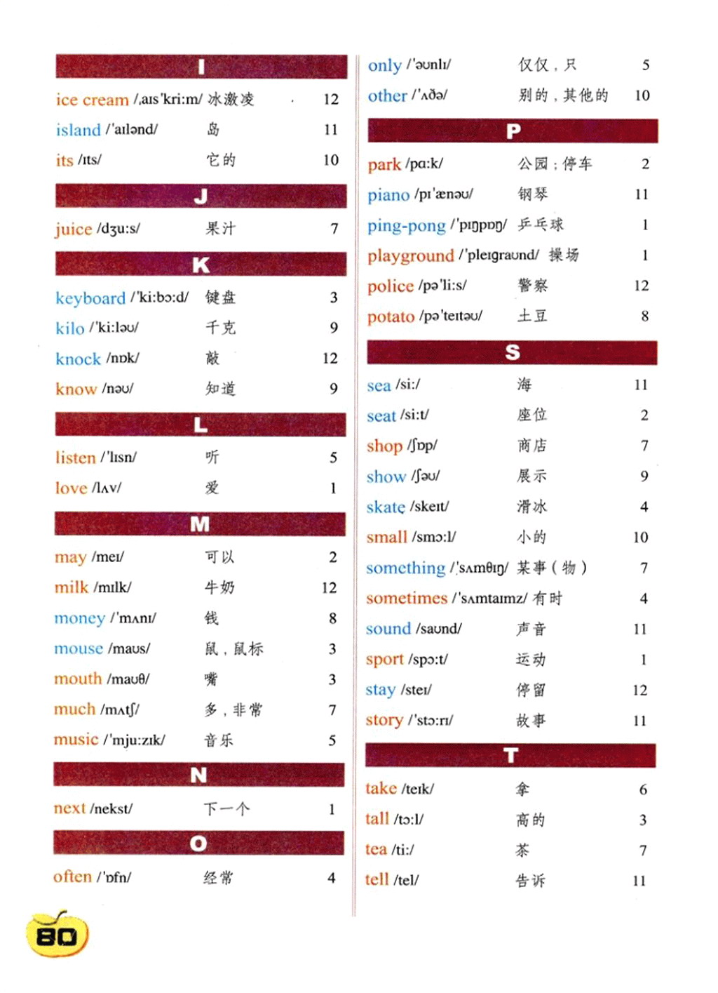 科普版五年级上册英语单词