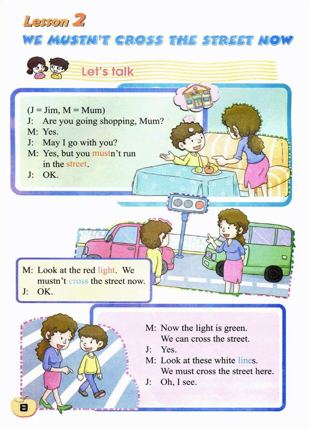 > Lesson 2 We mustn't cross the street now.