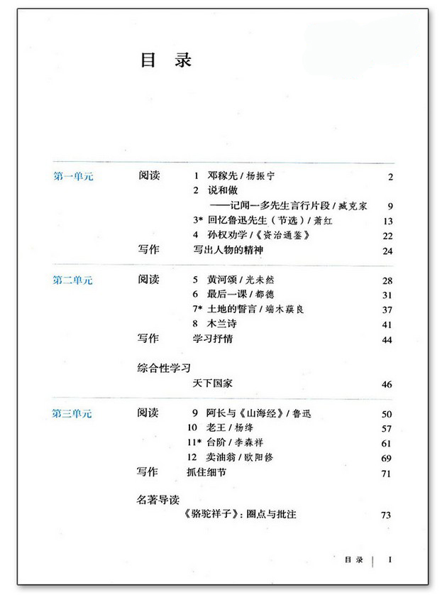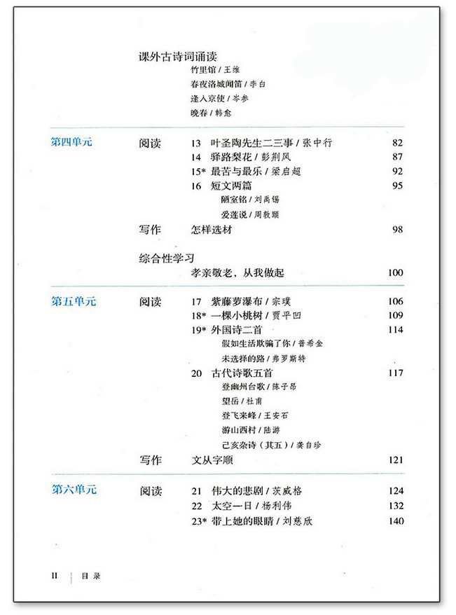 语文七年级下册目录