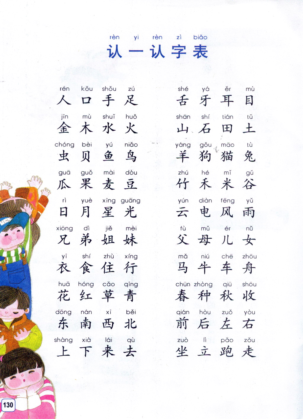 小学一年级语文上册,认字表