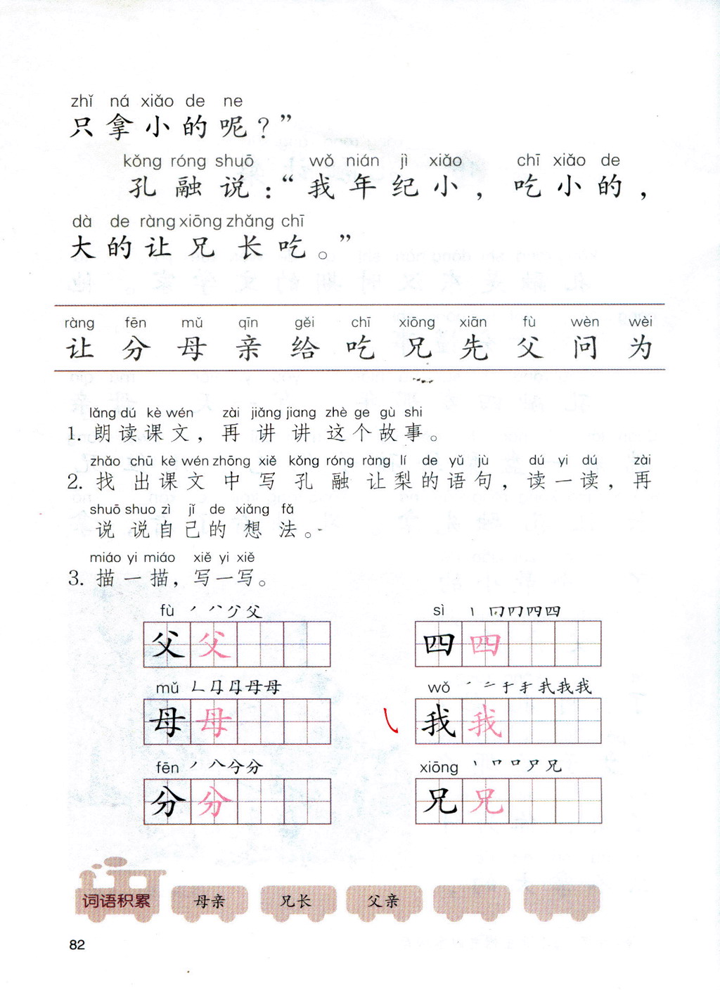 小学一年级语文上册,孔融让梨