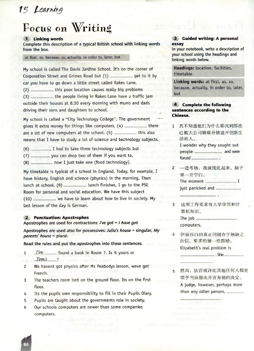 写作指导、语法和课文注释