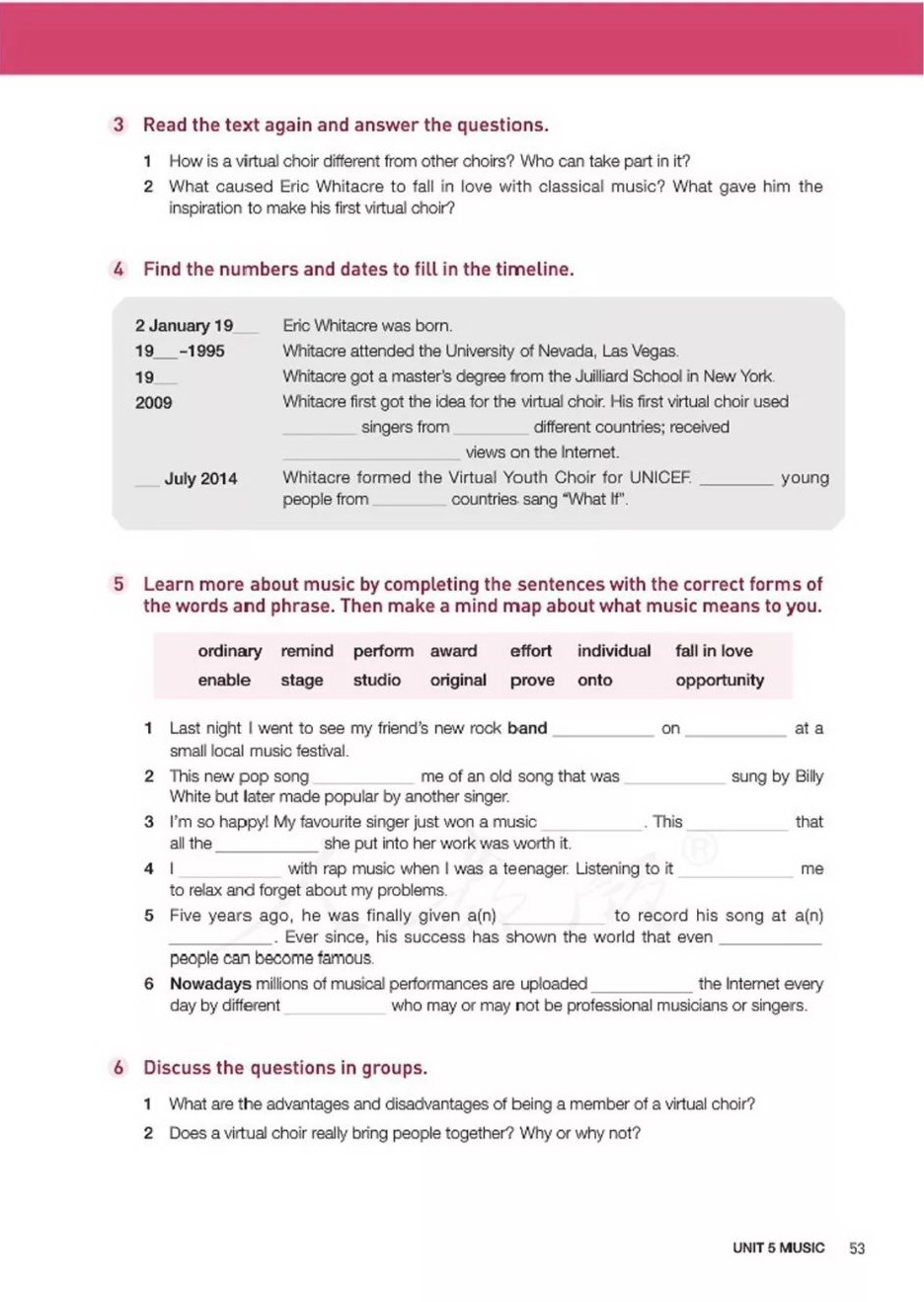 人教社高中英语新教材必修二Unit 5 Music课本