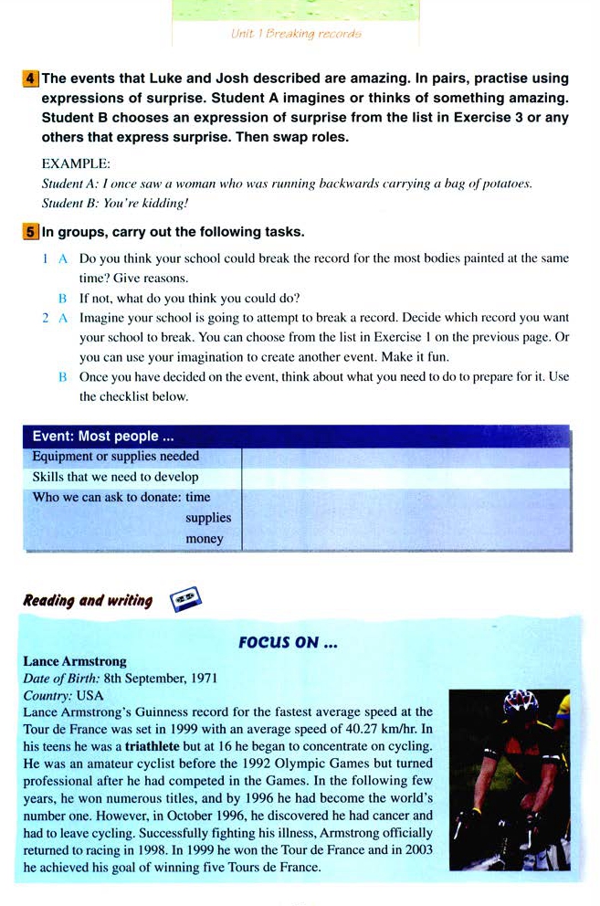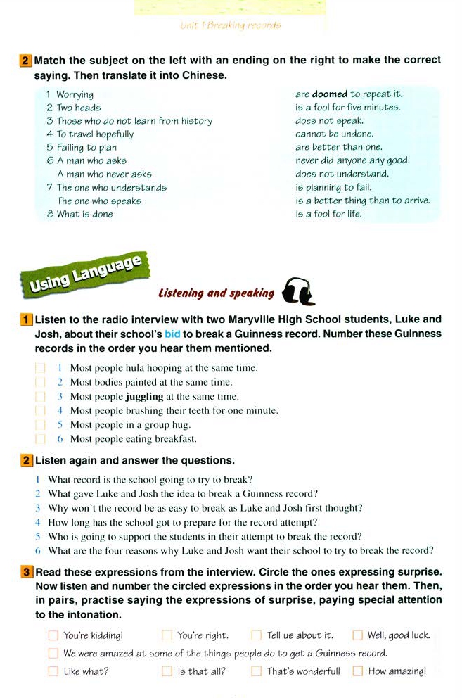 高中英语选修九Unit 1 Breaking records