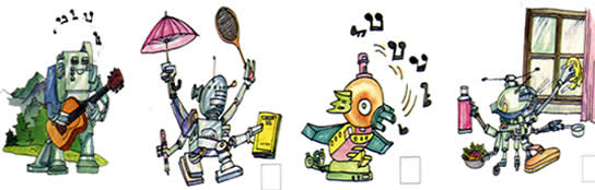 Listen to the tape. Identify the three robots in the pictures below and number them