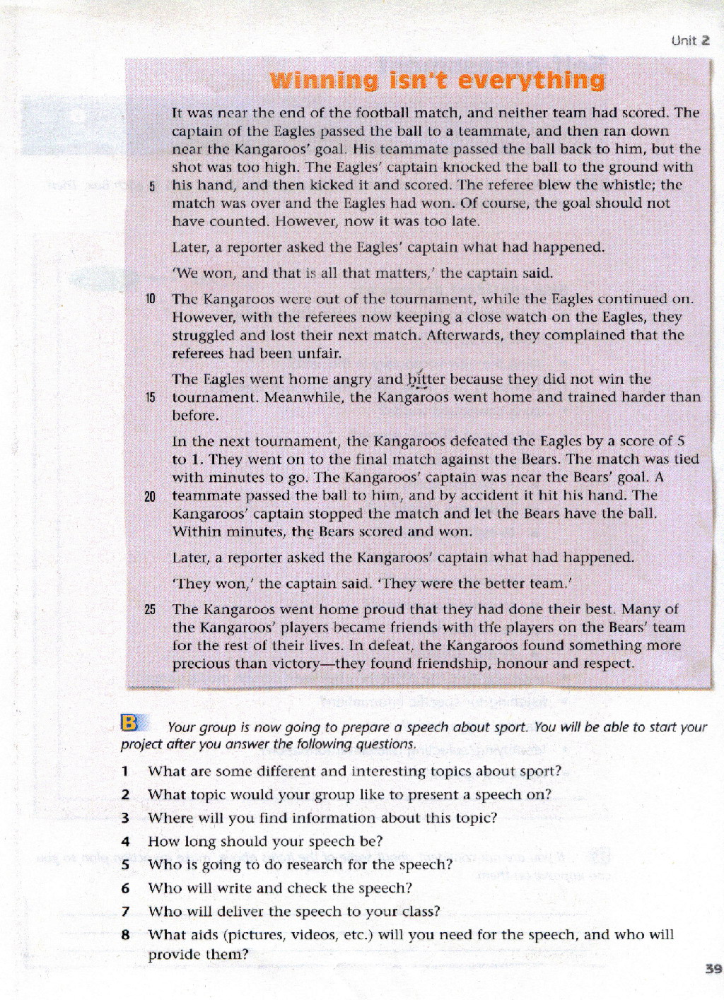 > Unit 2 Sports events