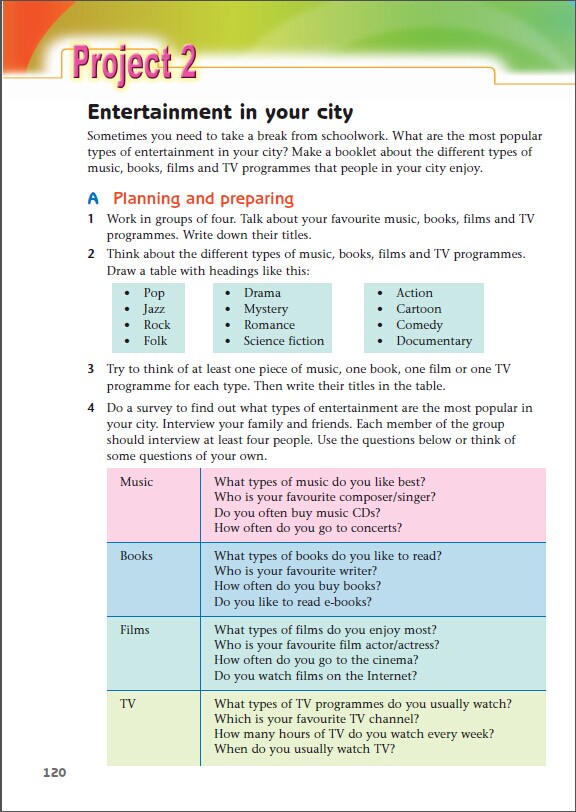 九年级上册英语,Project 2 Entertainment in your city