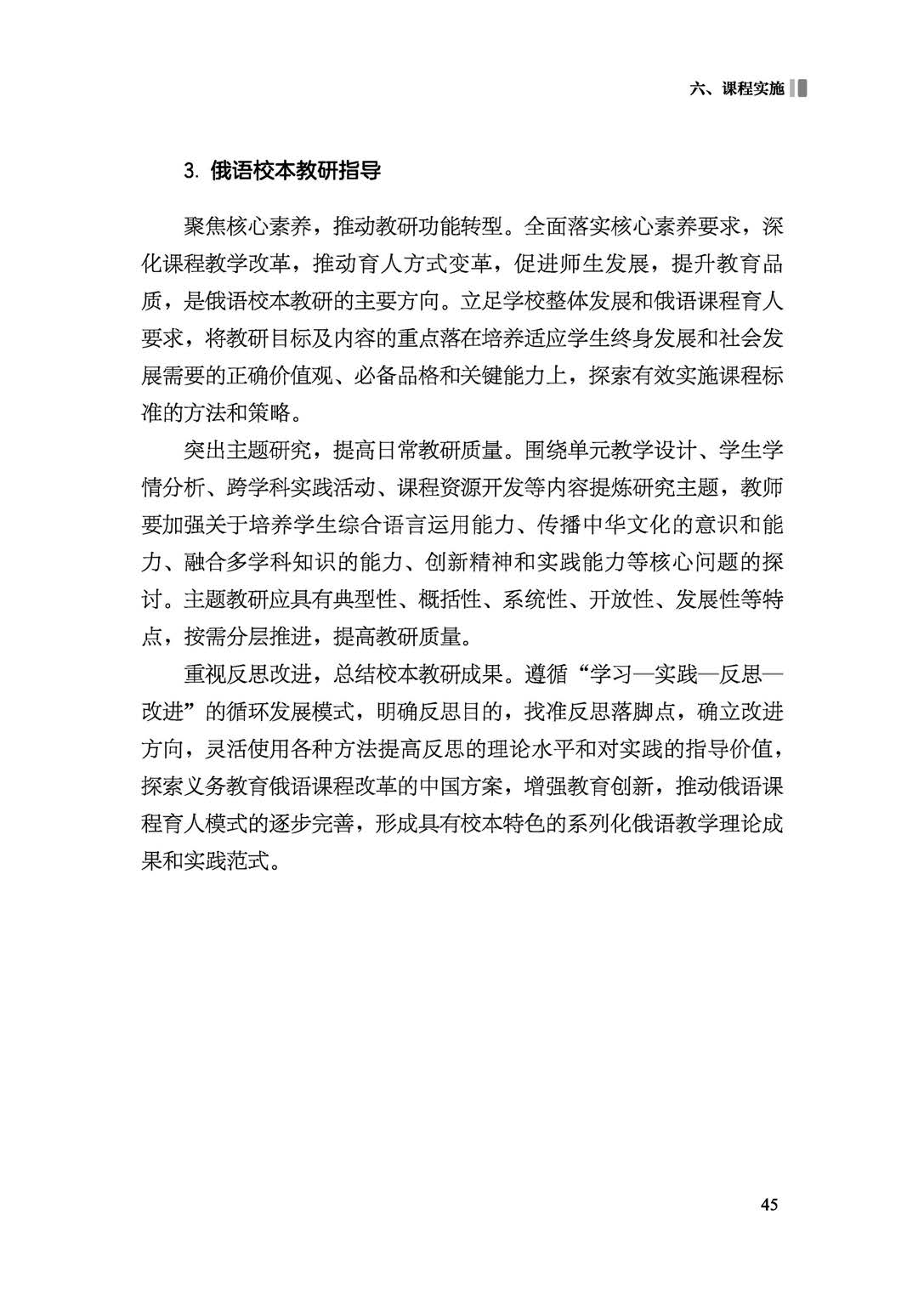 各地要统筹谋划、系统推进义务教育俄语课程标准(2022年版)落地实施。有计划、有步骤地组织开展培训,多种形式强化课程改革理念和改革总体要求的研修交流,实现校长、教师及教科研人员、教育行政人员全覆盖。