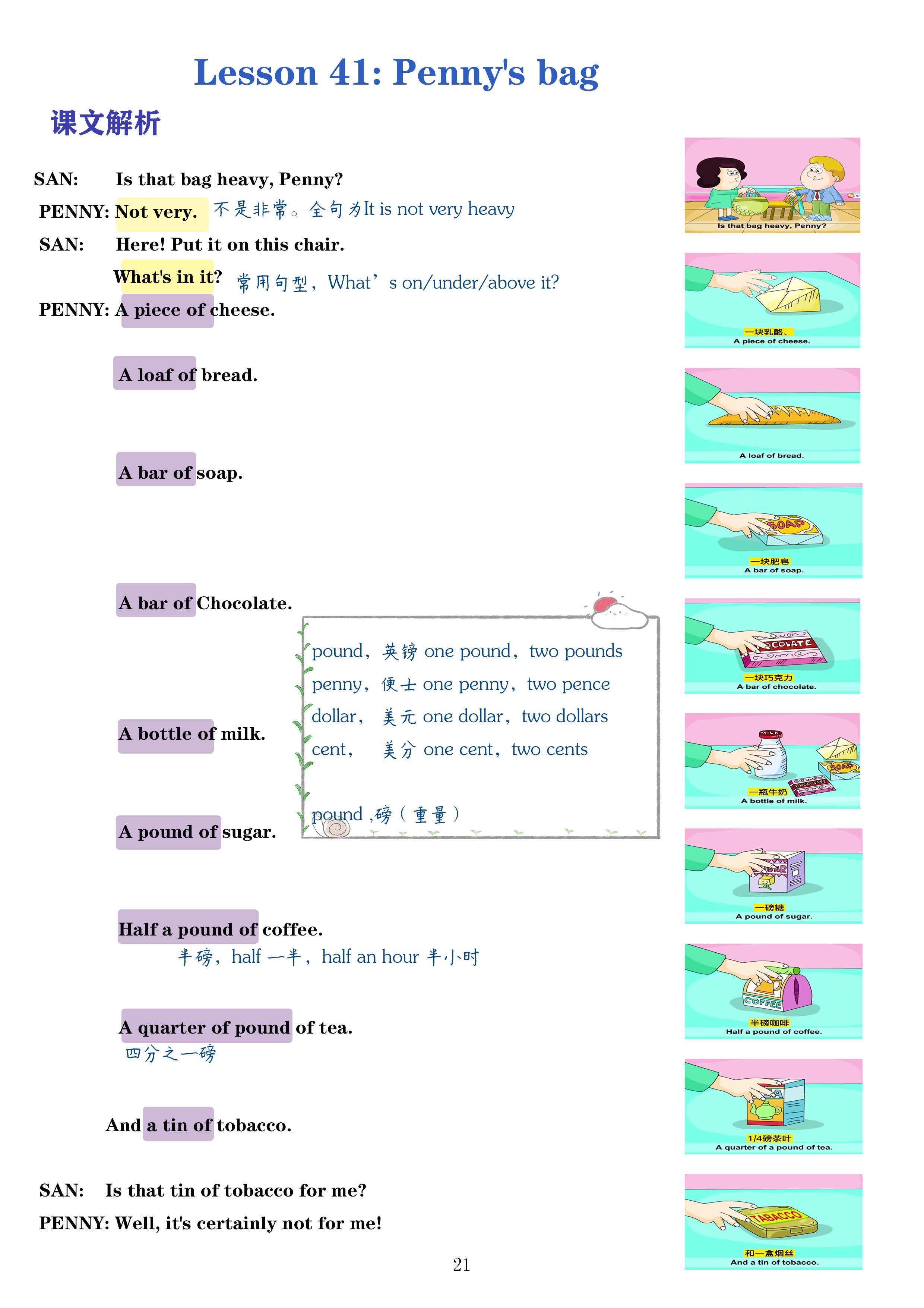 Lesson 41 Penny's bag自学笔记