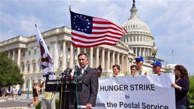 | Congress also has the power to create post offices and a system to deliver mail. Here, Dennis Kucinich, a member of Congress from Ohio, urges Congress to help the U.S Postal Service. |