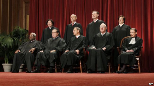 In this photo taken Oct. 8, 2012, the justices of the U.S. Supreme Court gather for a group portrait at the Supreme Court Building in Washington.