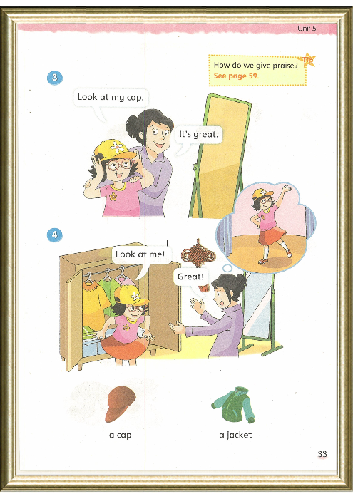 单元的核心内容。该板块呈现了杨玲着装的过程,帮助学生学习服装类4个单词。“Look at…”的句型主要是要教会学生怎样介绍自己的服饰,妈妈的回答恰恰我们在英语的环境下如何做出合理评价。