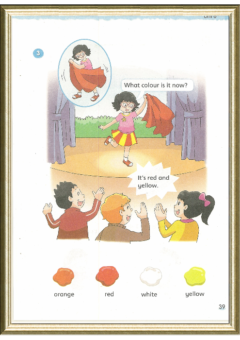 本课通过杨玲的魔术表演,边复习前一单元所学的着装类单词,边引入颜色类新词。由Look at my … 引出What colour is it ? What colour is the … ? It’s …