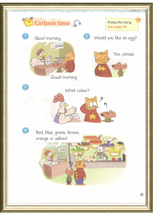 本版块通过Sam 和Bobby购买鸡蛋的过程,新授了单词egg。在教的时候特别要注意 an egg的连读凡是。在本课教学中,我们始终贯穿着Enjoy the story这条主线。首先让学生通过看看插图,听听录音,读读对话,享受阅读故事的乐趣。对于这样的故事教学,我们还应该让学生进行角色扮演,自己体会语句在情境中的运用方法或文章的妙趣。激发学生的表演欲,鼓励学生勇于展示自己,并在角色扮演以及游戏中学会合作。