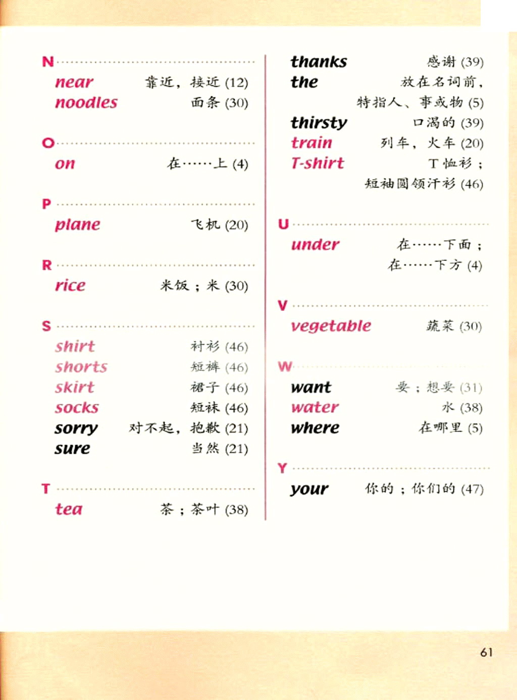 新起点一年级下册英语单词表