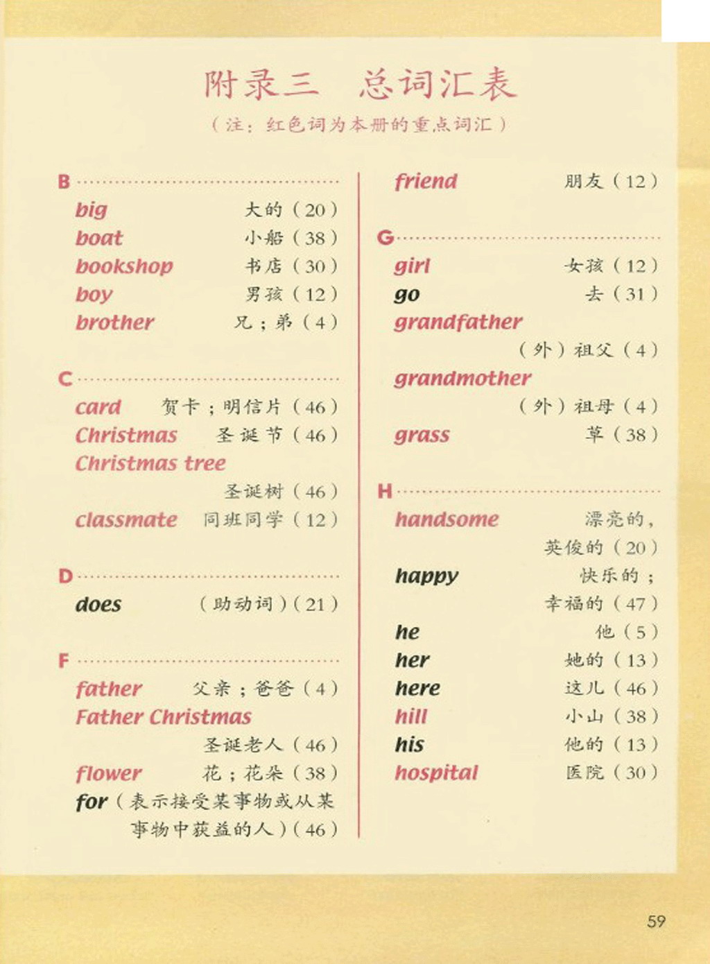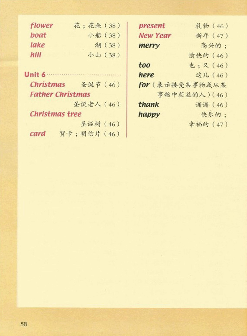 新起点二年级上册英语单词表