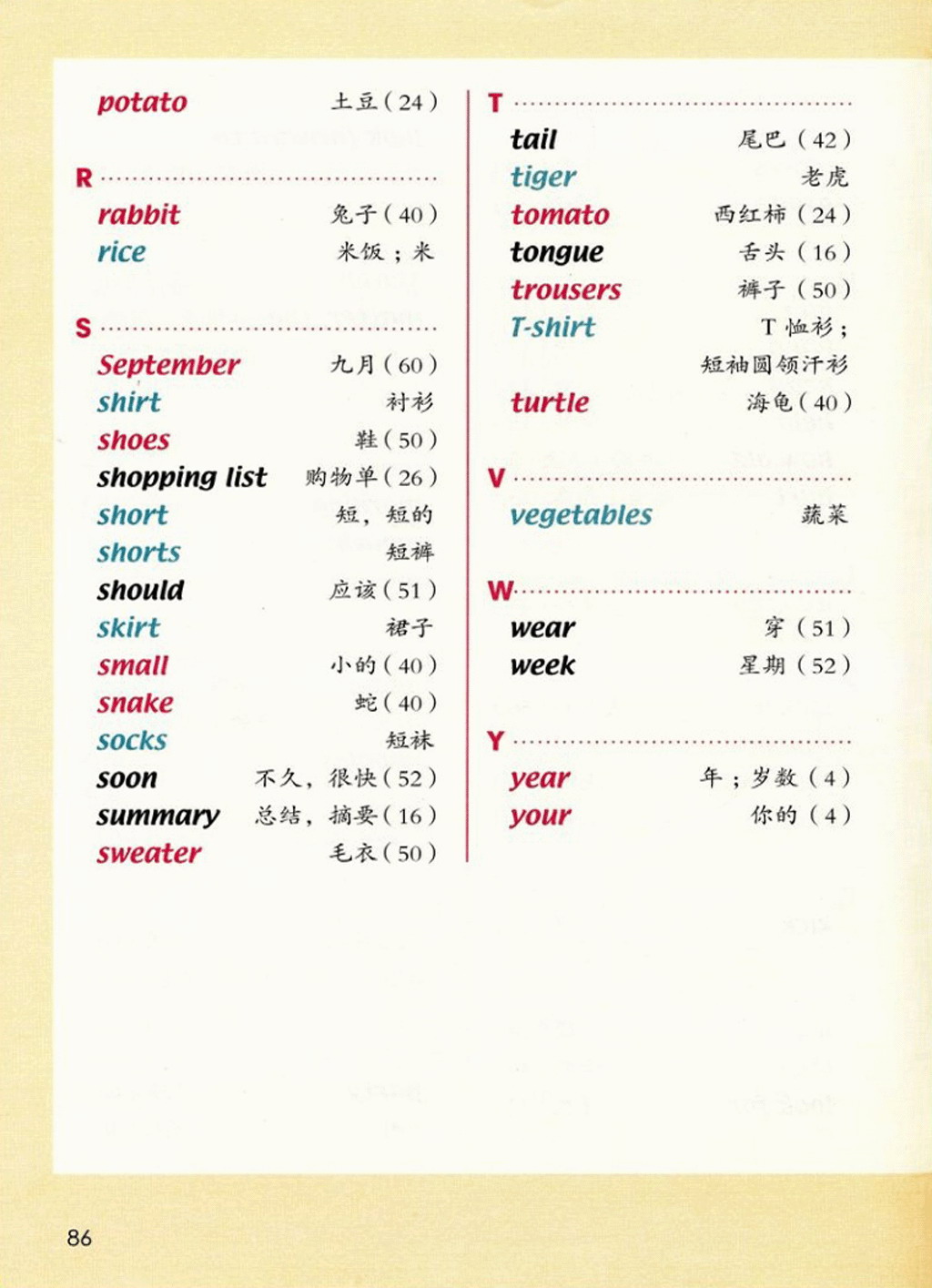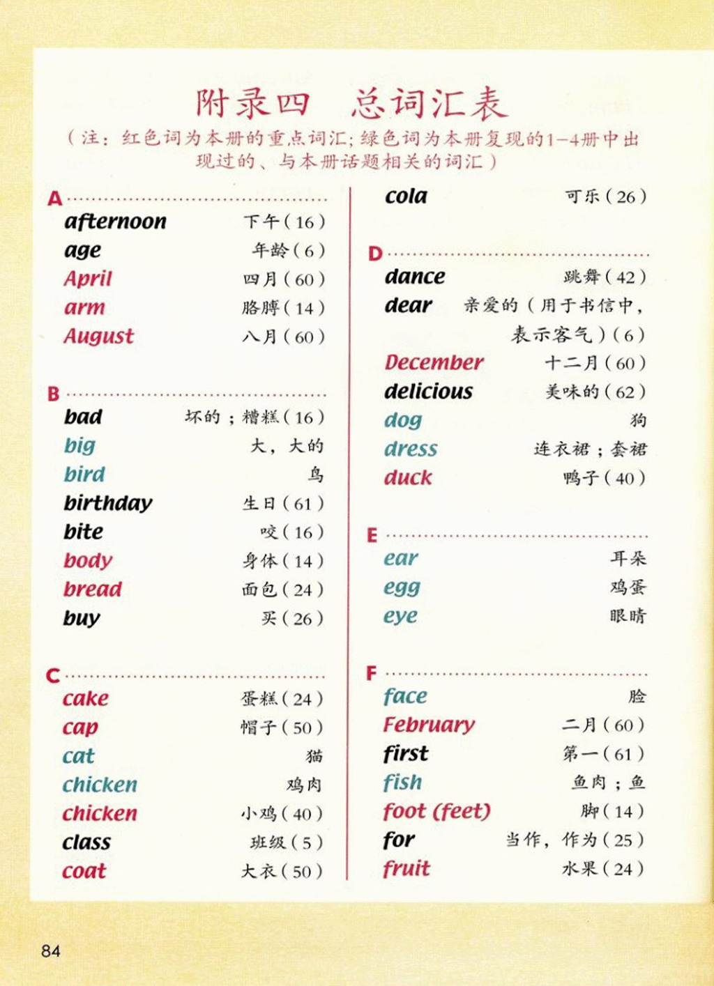 新起点三年级上册英语单词表