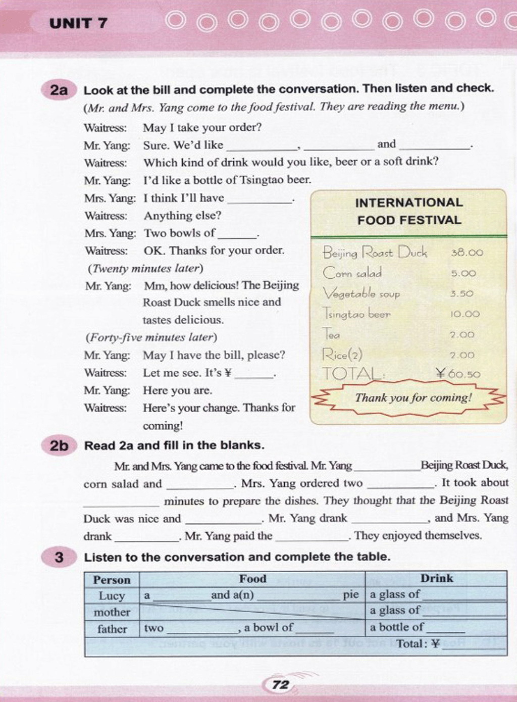> Unit 7 Food festival