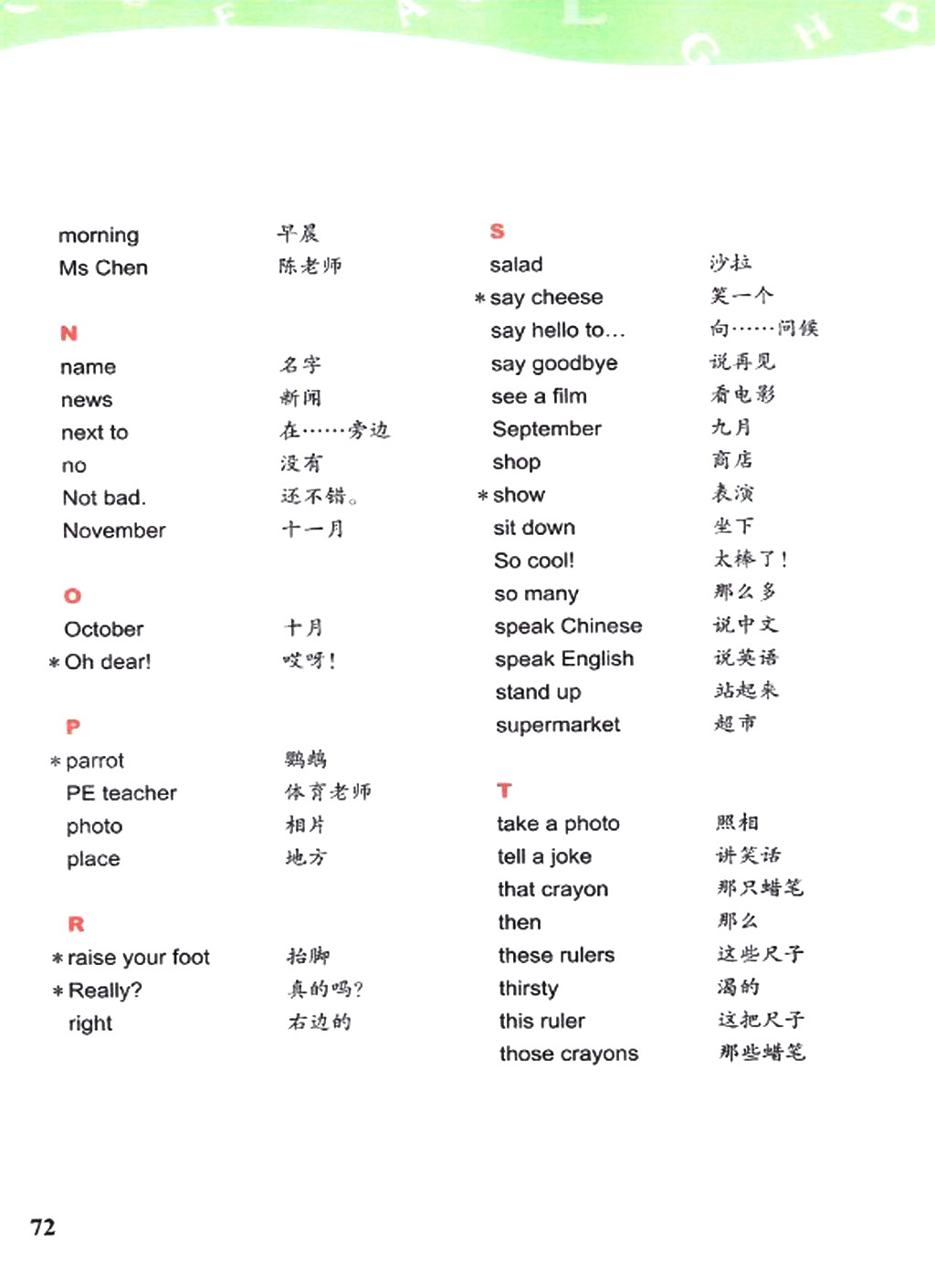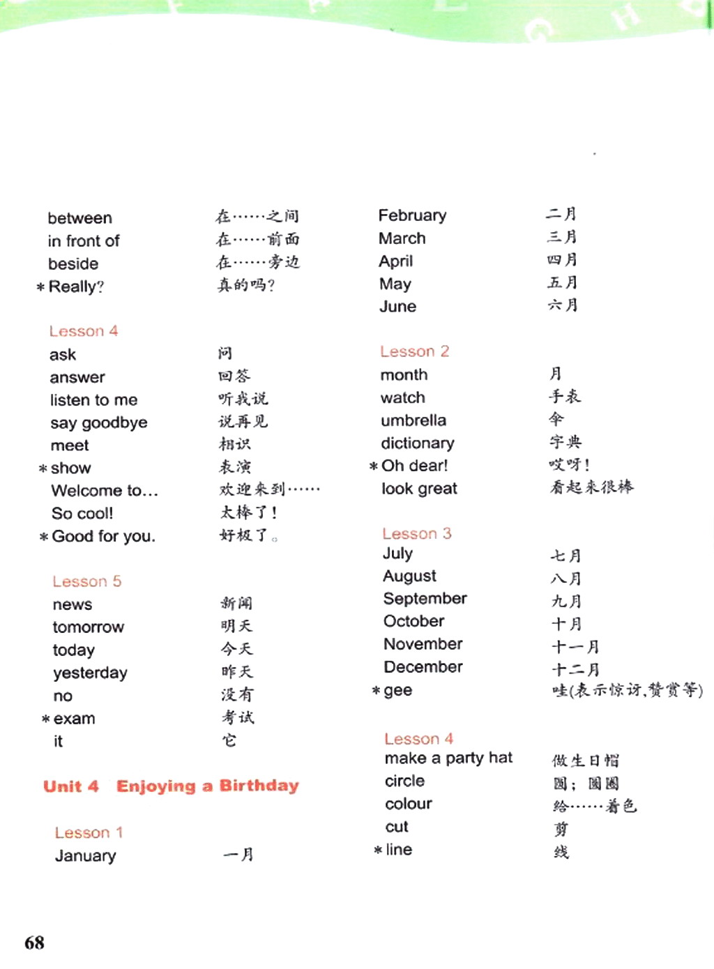 四年级下册英语书单词表: