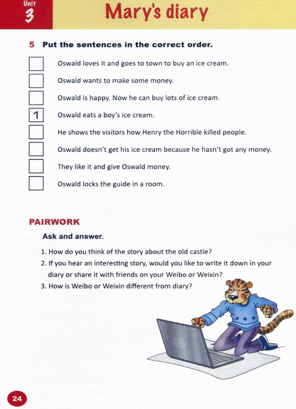 > Unit 3 Mary's diary