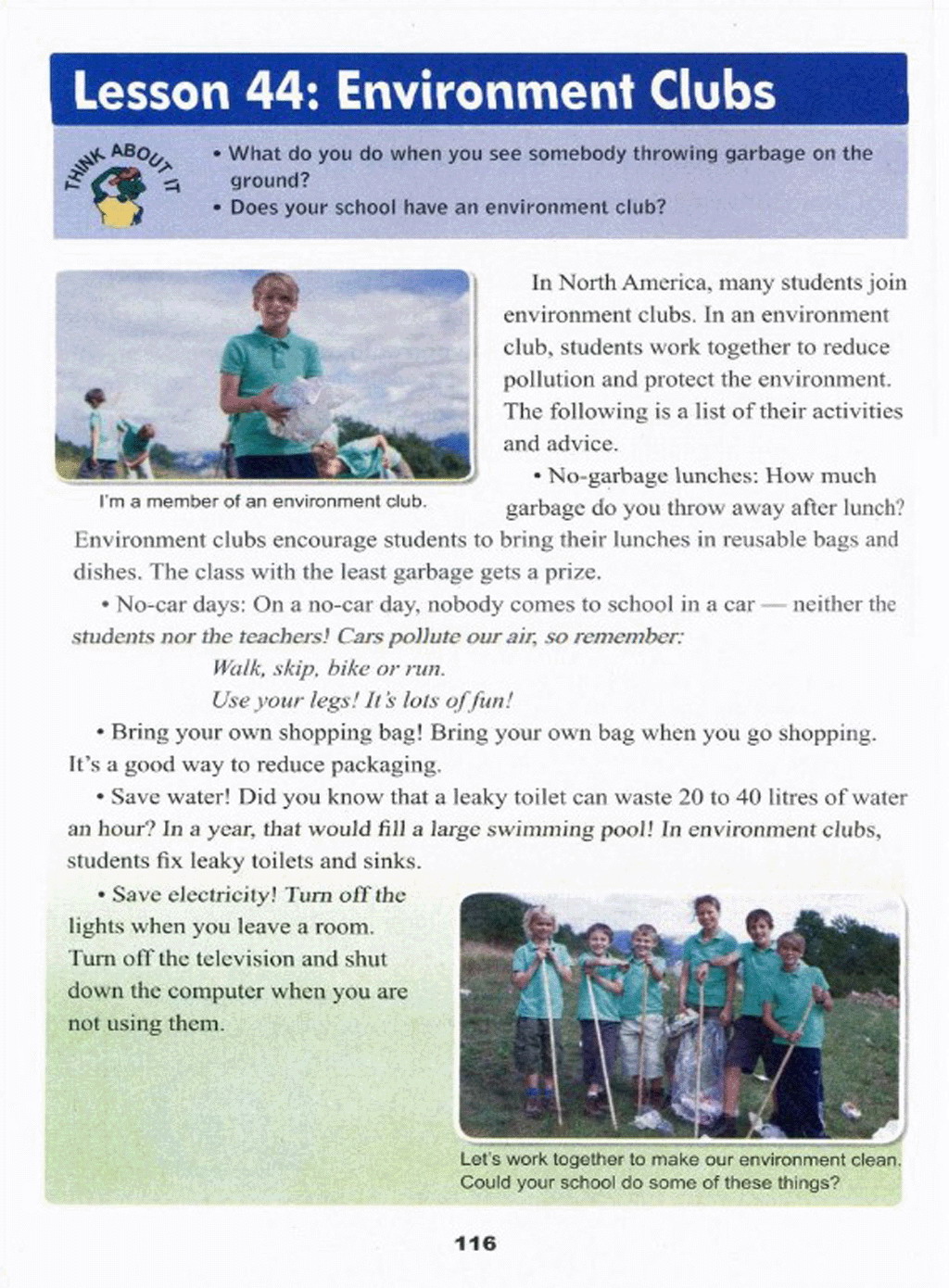 > Lesson 44 Environment clubs