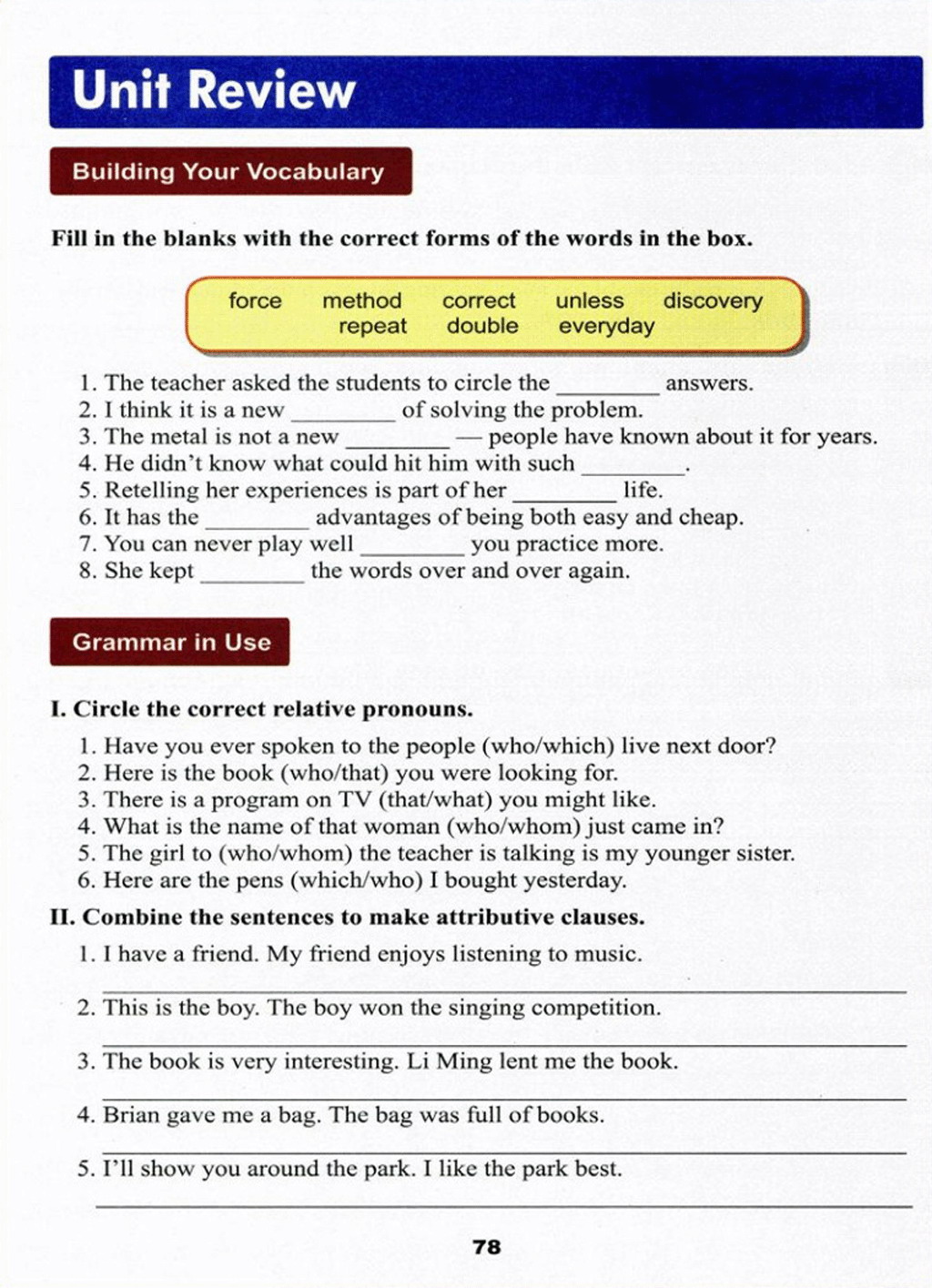 冀教版九年级英语Unit 5 Unit Review