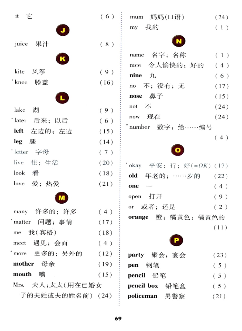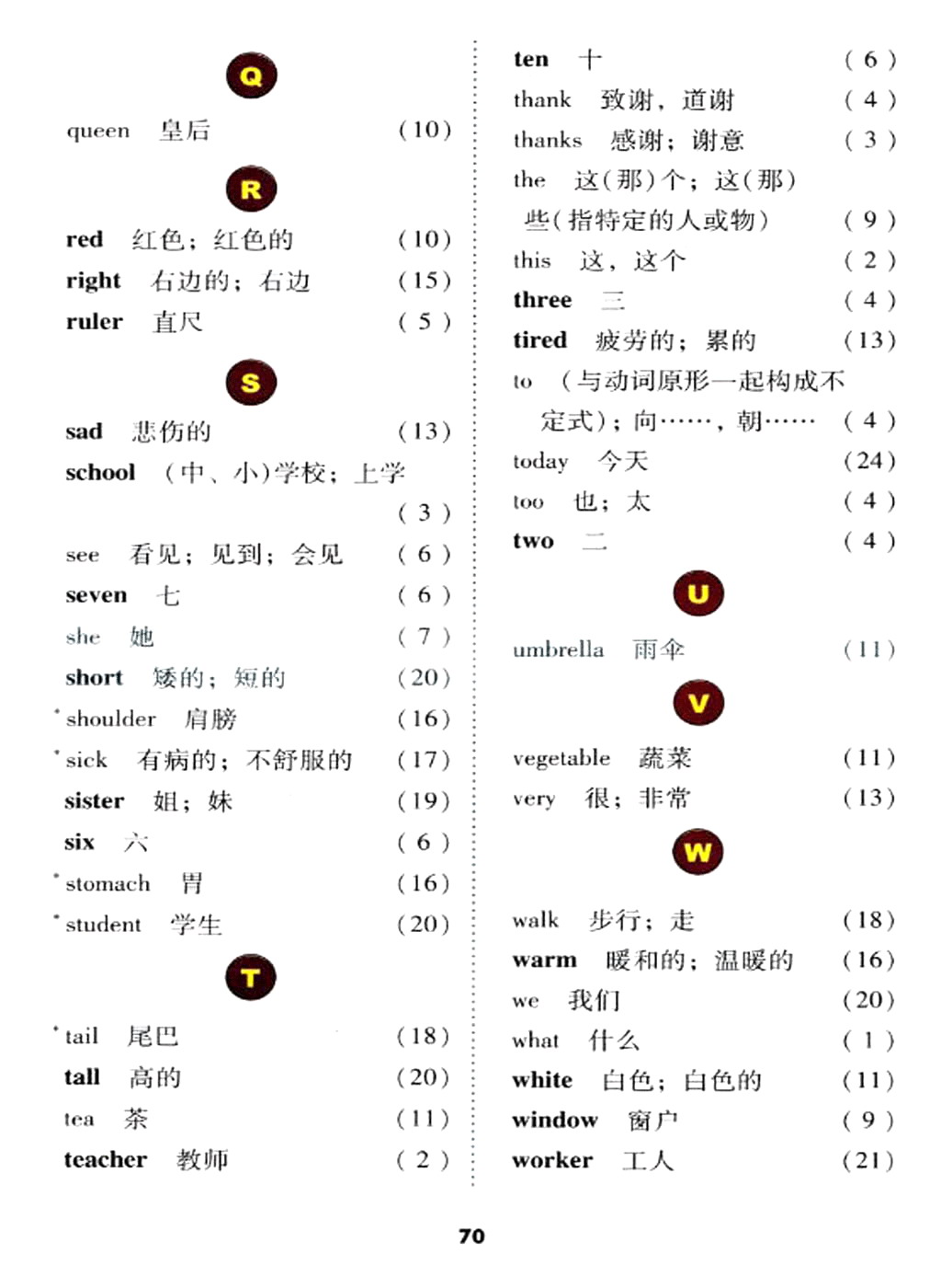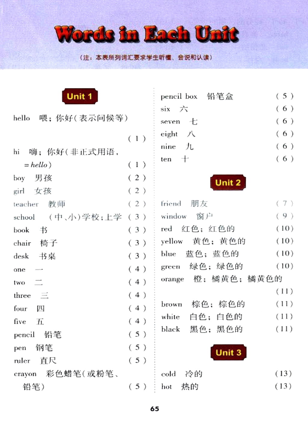 冀教版三年级上册英语单词表