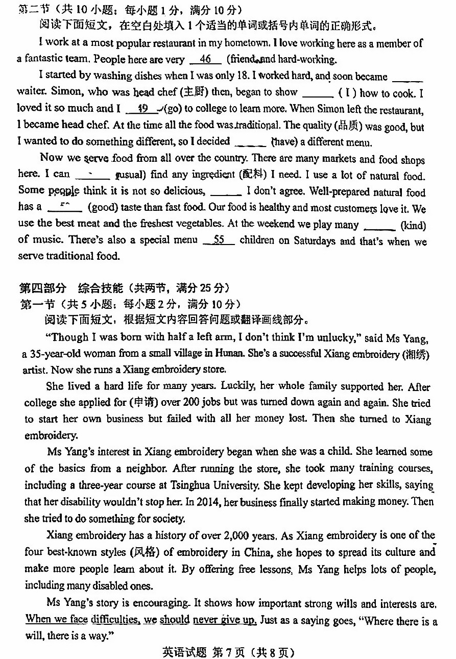 2024年湖南省中考英语试题和答案