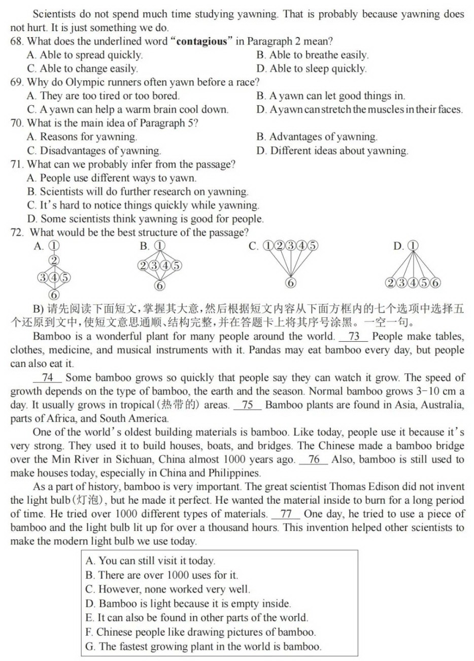 江西省2023年初中学业水平考试英语试题和答案