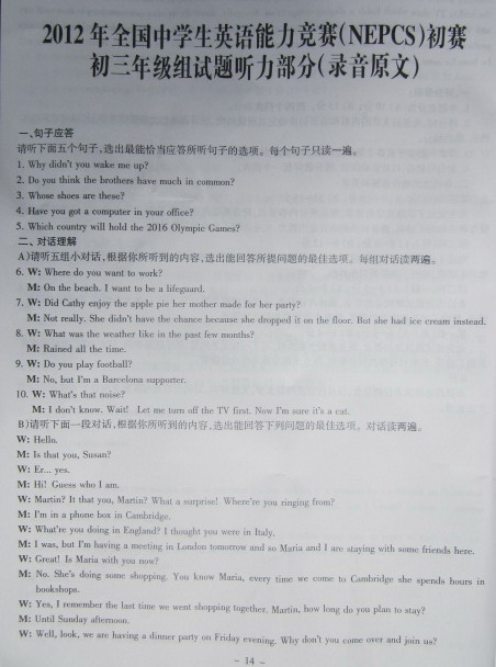 全国中学生英语能力竞赛听力