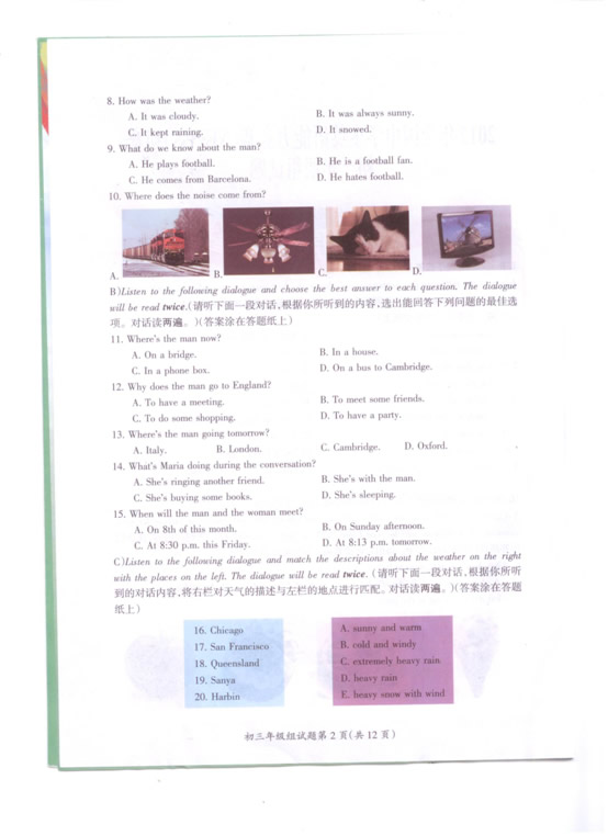 2012年初三年级英语听力mp3和真题下载