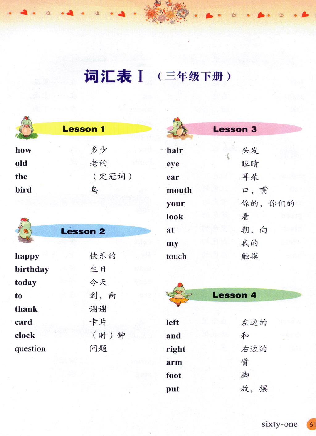 接力版三年级下册英语词汇表