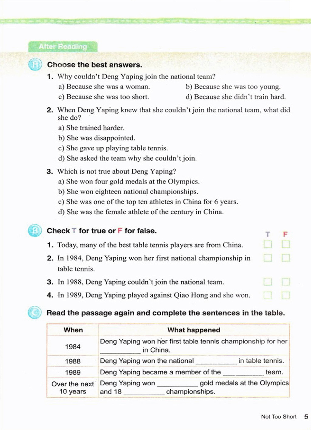 > Unit 1 Not too short