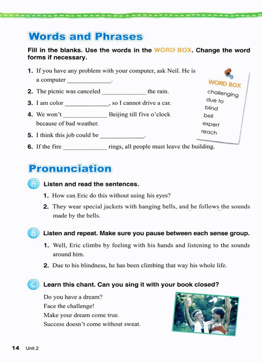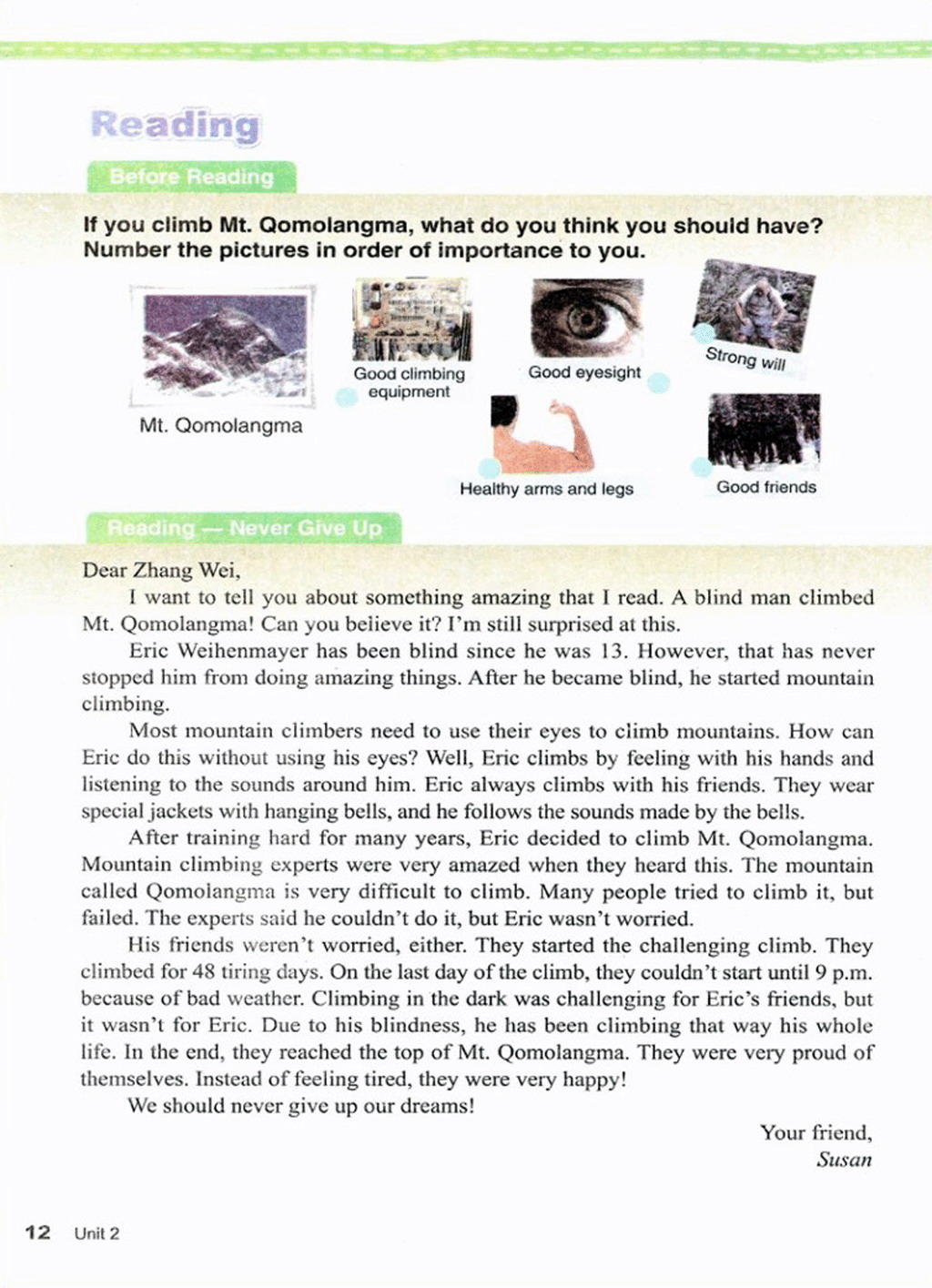 > Unit 2 Never give up
