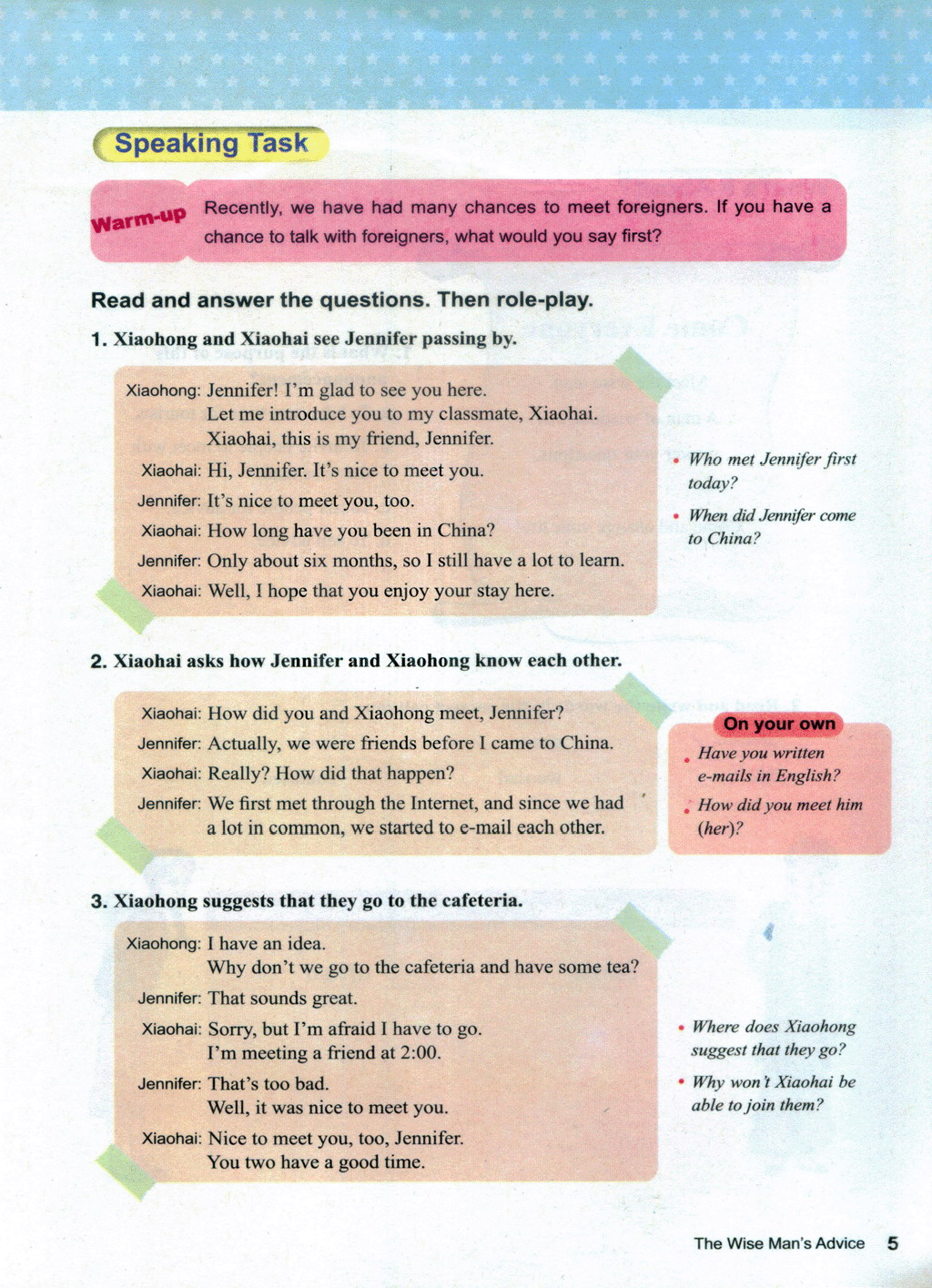> Unit 1 The wise man's advice