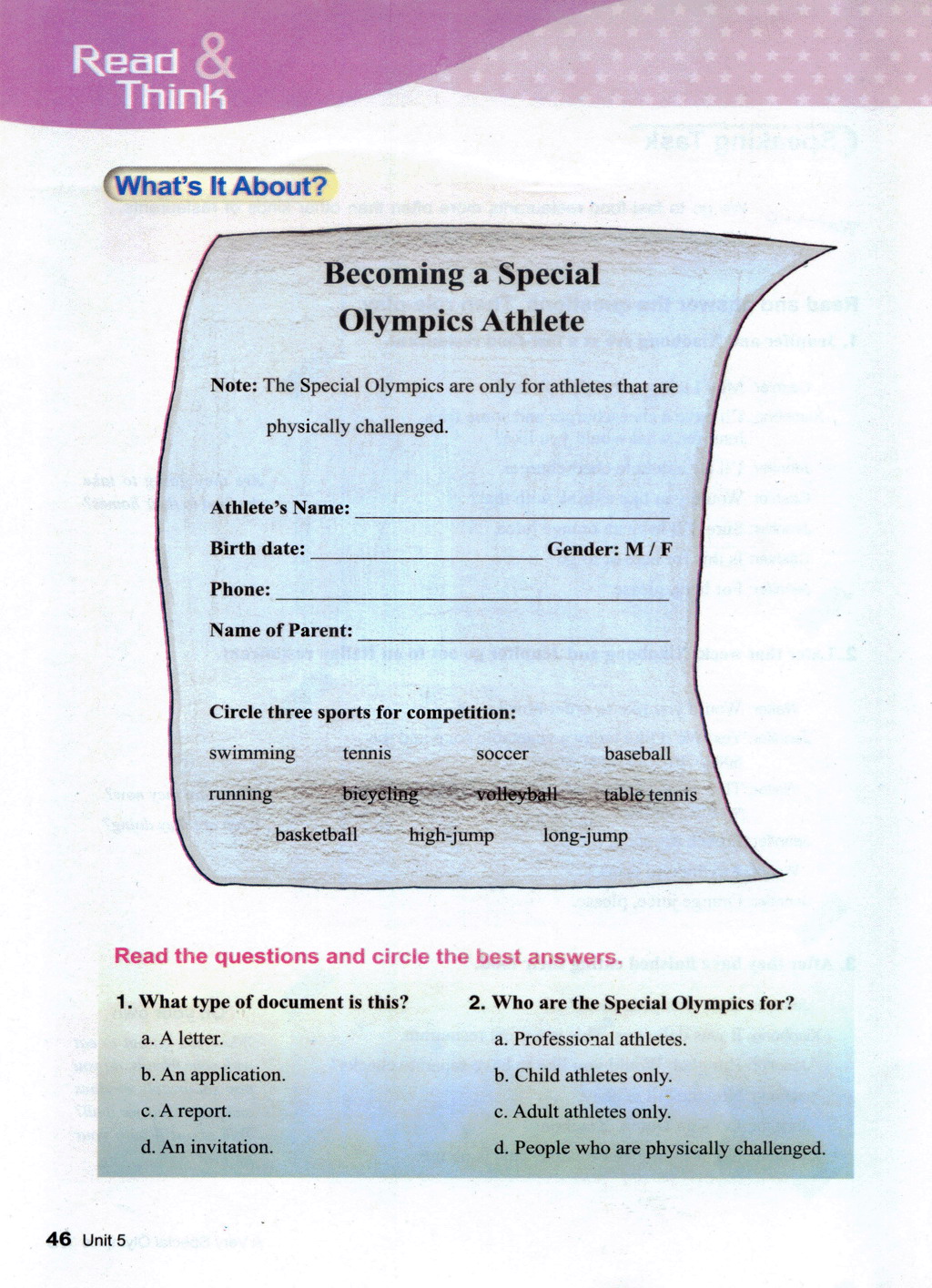 Unit 5 A very special Olympics