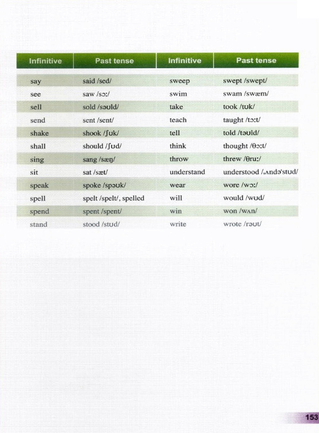 > 不规则动词表和语音